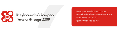 На Всеукраинский конгресс «Итоги HR-года 2009» приглашены HR-директора, специалисты HR-департаментов, HR-консультанты, тренера для того, чтобы подвести итоги работы HR-рынка в 2009 г., выявить основные тенденции и направления развития HRD в 2010 г.